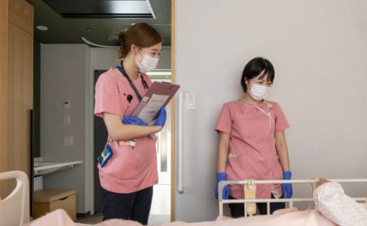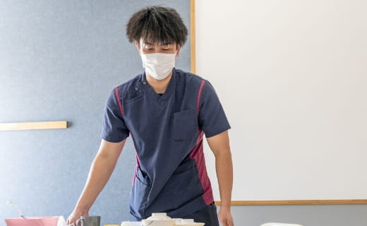 日勤、夜勤の勤務体制で制服の色を分けています。全スタッフ分かりやすくなり、定時退勤に繋がっています。