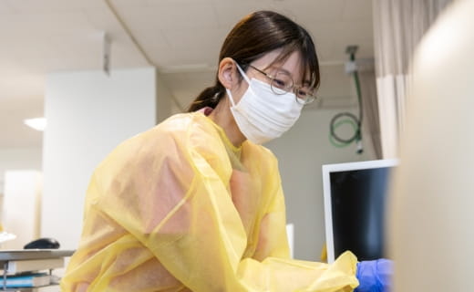 救急外来では、急な体調不良や重症の患者さんを受け入れ、迅速に対応しています。緊張感のある現場だからこそ確かな判断力、観察力、技術力が求められます。