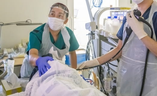食道・胃・十二指腸・大腸などの消化管と、肝臓・胆嚢・胆管・膵臓などの臓器の疾患を抱えた方が入院されています。内視鏡の検査や化学療法などの治療を患者様が安心・安全に受けられるようにサポートしています。