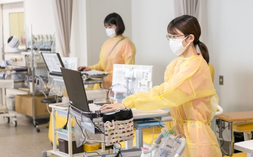 看護師が針を抜き、問題なく投与が終了したことを確認