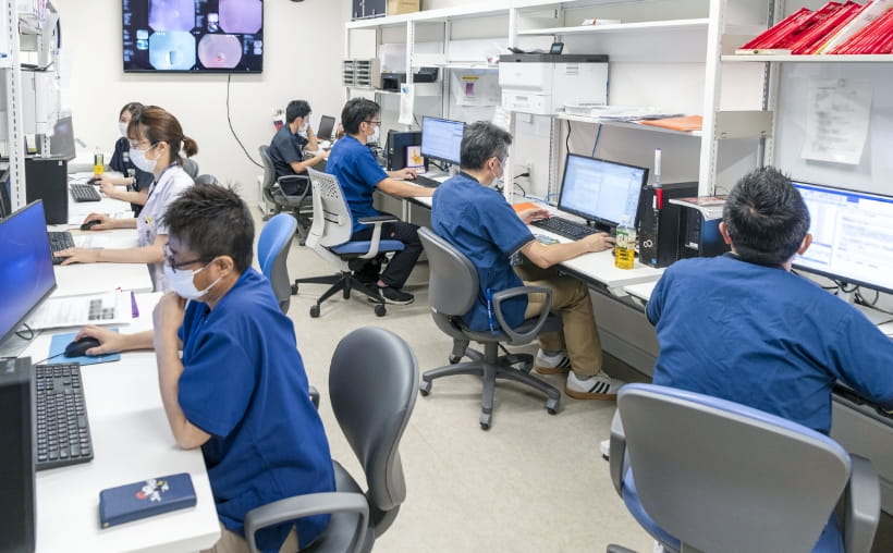 症例検討室を活用し、検査画像や結果を複数の医師で共有しています。