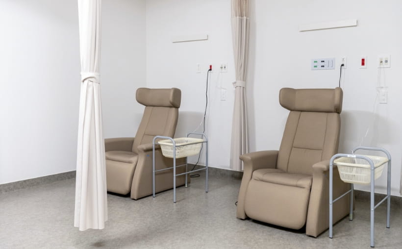 リクライニングチェア8台を備え、体調が落ち着くまでゆっくりお休みいただけます。